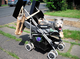 Hello. Did you know that the pooch has got into recycling as well. We were coming back from visiting a friend, and found some people taking stuff out of their full to bursting garage, and chucking it into their car. An opportunity to have a nosey, and maybe rescue a few things from the council dump. They allowed me to look through it. As usual there was stuff that could be used again so I loaded up the buggy. I couldn't turf Rocky out because it was too far for him to walk home, so he had to share the space, ha ha.