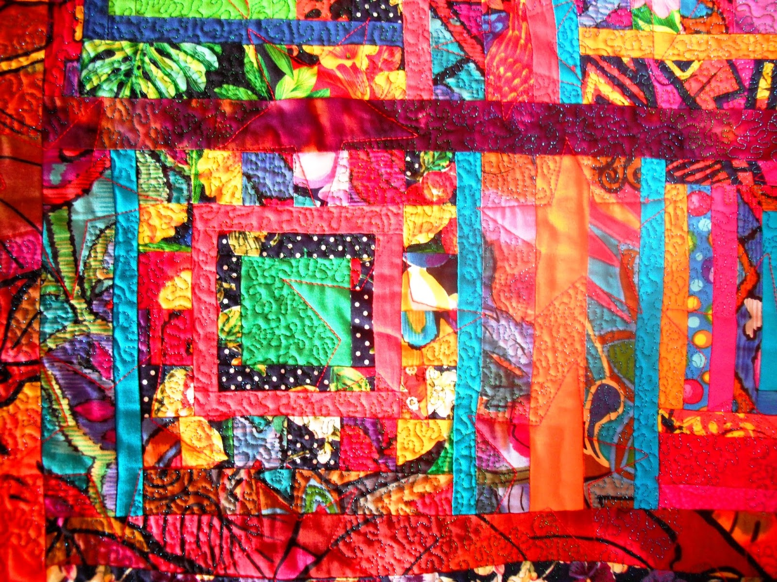 I was quite surprised to see that on some of her quilts she leaves all the ends of the threads loose at the front. It adds an interesting dimension to her work. A tip that some quilters might like to try.