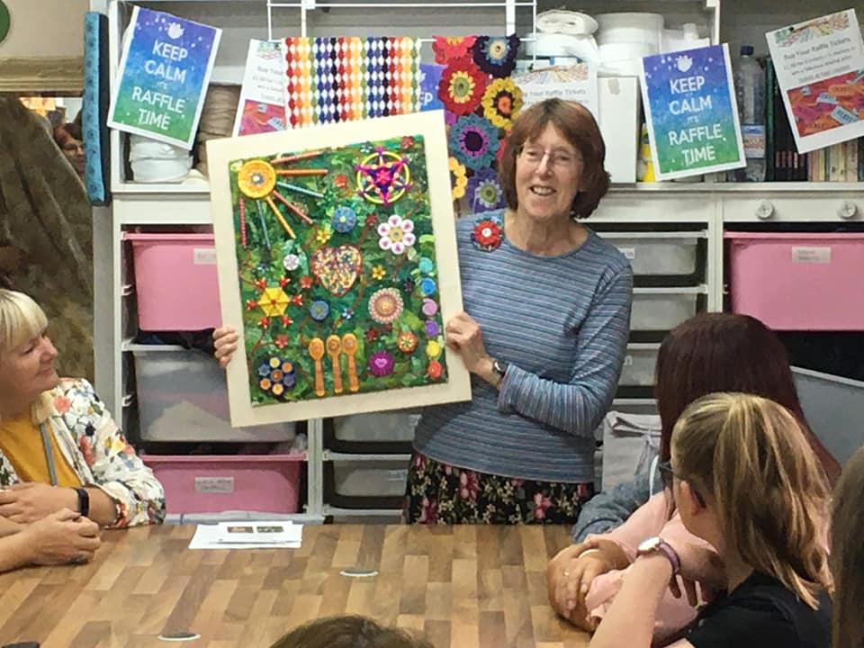 It looks like a good time was had by all and that is a lovely photo of you holding your plastic garden picture!.Nice that there was quite a few youngsters there as well!.I wish that they had things like this where I live.xx