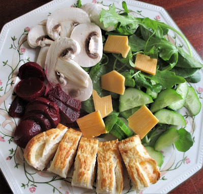 Lunch was a salad, with a cheese and onion roll.