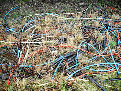 We get quite a lot of cable theft in this area, and here is the evidence. Sometimes whole villages lose their phone connections or have power failures. Luckily it hasn't happened here yet. With the price of metal rocketing the thieves are having a field day.