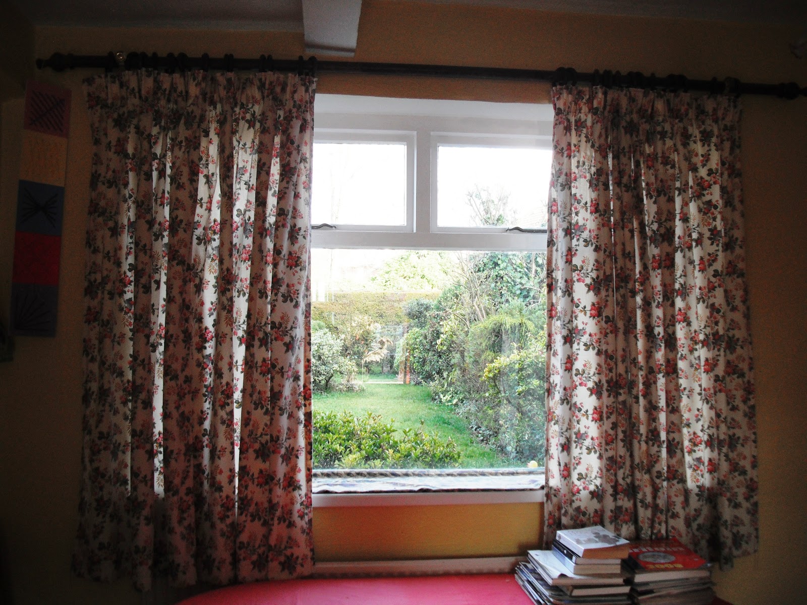 ReplyDeleteWhat a gorgeous view from your window. With a garden like that outside, your room could never be 'cheerless', curtains or no. :-D