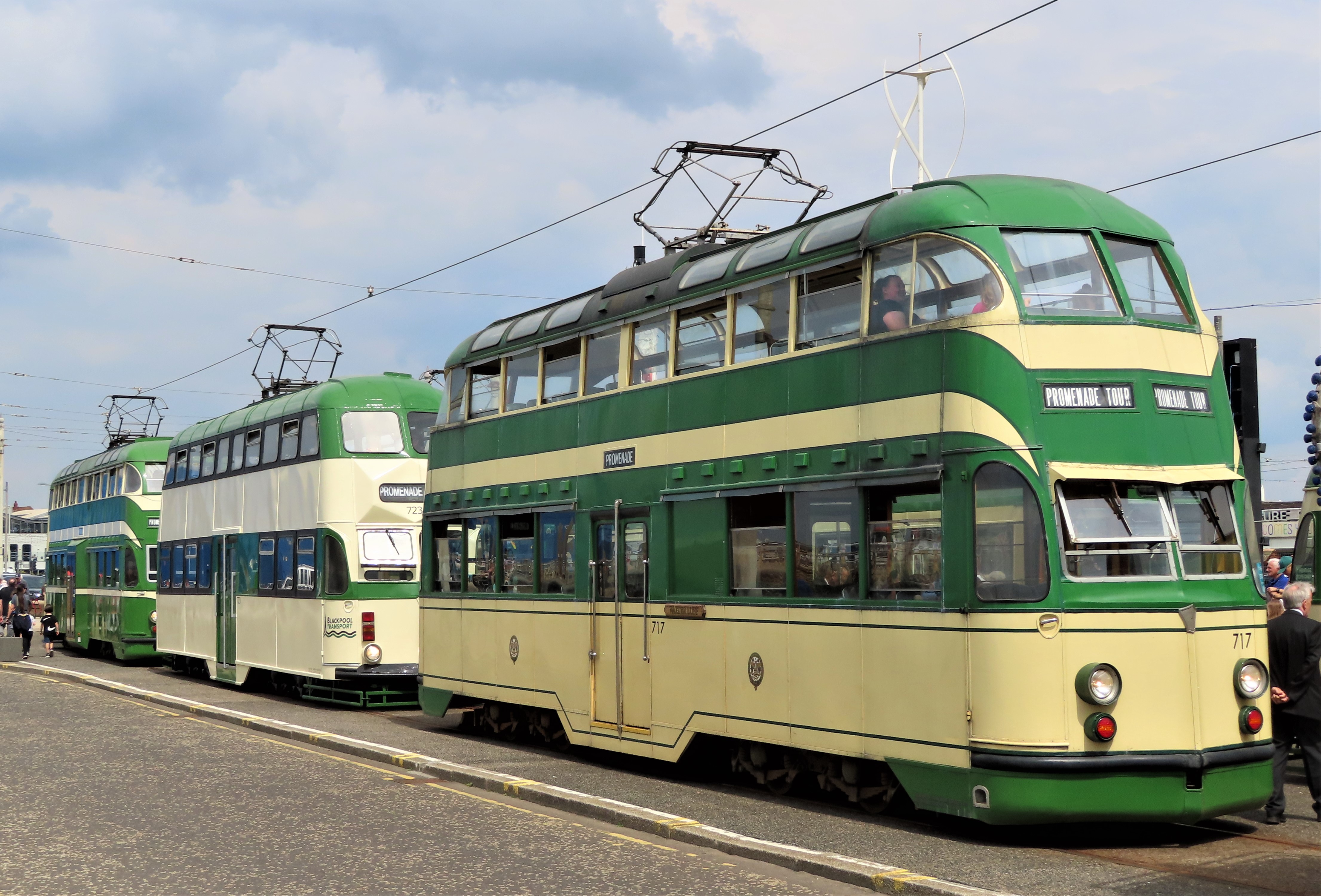 There were double deckers, and open top trams. Decorated, and plain green and cream.